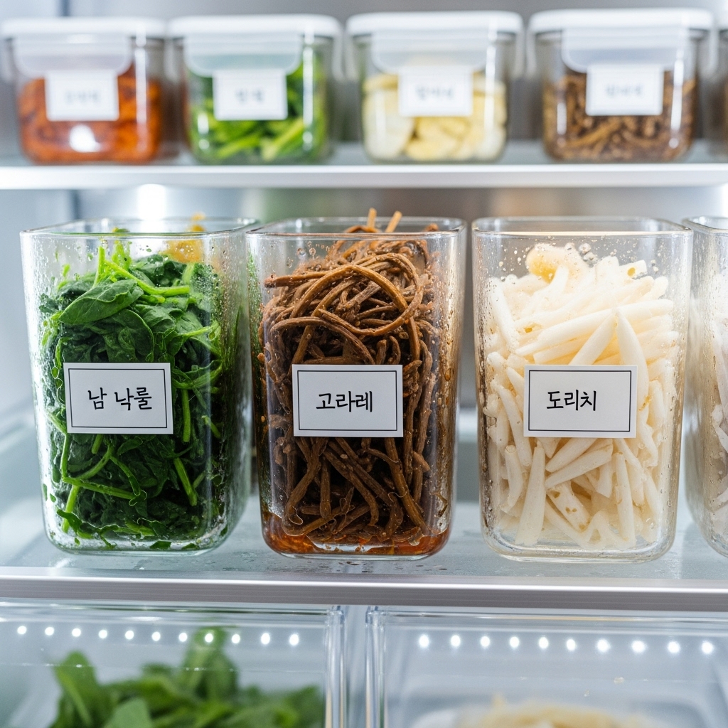 - ✅ 나물 보관은 밀폐 용기에 소분 냉장/냉동! 신선도 유지가 핵심입니다.